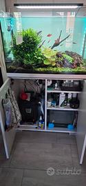 Vendo per mancanza di tempo setup professionale completo. Solo componenti top di gamma, ideale per aquascaping. Sistema progettato per autonomia totale fino a 3 settimane. HARDWARE: Vasca e Mobile (dovrei avere le scatole): Oase Styleline 175 (125L netti, 80x40x55 cm) bianco. (reso aperto da me). Illuminazione (dovrei avere la scatola): Chihiros WRGB II 60cm (controllo via App). Filtrazione: Oase BioMaster Thermo 250 (riscaldatore integrato) + Skimmer Oase CrystalSkim 350. Secondo filtro dedicato per filtrazione chimica. CO2: Impianto completo con elettrovalvola professionale e diffusori vetro. (bombola nuova acquistata questa mattina) Osmosi: Impianto 4 stadi con pompa Booster Grand Forest e TDS meter in linea. Automazione: Rabbocco Smart ATO Micro con vasca 30L dedicata + Ciabatta Smart per controllo remoto. Piante: Anubias Pinto (rara), Bucephalandra Deep Purple, Nymphaea Lotus Rossa, Proserpinaca Palustris Cuba, Rotala (H'ra, Orange Juice, Green), Montecarlo. Pesci: Hemigrammus bleheri (Testa Rossa), Cardinali, Otocinclus, Caridine (Japonica e Red Cherry), Neritina Black Helmet. ACCESSORI INCLUSI mangiatotia automatica ventola di raffrescamento automatica della Chihiros pHmetro Hanna Instruments pHep. Protocollo Alxyon PhytaGen (4 flaconi SIGILLATI) + Carbone C1. Valigetta test JBL, kit strumenti inox, pompe per cambio acqua, taniche. NOTE PER L'ACQUIRENTE MANUTENZIONE: Per trasparenza, per mancanza di tempo ora la vasca necessita attualmente di sistemazione di prato e piante e di una potatura e di pulizia delle alghe superficiali su rocce/legni. La tecnica e la salute del vivo sono perfette. TRASPORTO: Ritiro a Segrate (MI). Obbligatorie almeno 2-3 persone e mezzo idoneo. È un sistema pesante e complesso: fornirò assistenza per spiegare il funzionamento, ma il carico è a cura dell'acquirente. Contattare solo se realmente interessati. Non vendo componenti separati. Prezzo: 1.500€ trattabile( Valore totale del materiale a nuovo: oltre 2.600€)