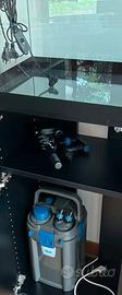 Vendo bellissimo acquario oase 85 litri completo di tutto: Rocce; lampade di serie, mobile di supporto come da foto, filtro oase biomaster 250 con riscaldatore interno, kit pulizia, test. Inoltre regalo 2 pesci angelo che attualmente si trovano nell’acquario