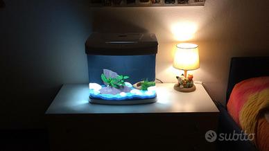Vendo acquario per pesci. (senza pesci). Utilizzato poco e perfettamente funzionante. Dimensioni: 45x40x33 cm 60 Litri in OMAGGIO: sassolini, pietre, anfora e per manutenzione carbone vegetale e batuffoli per i filtri. Non trattabile.