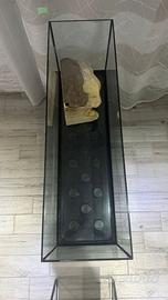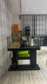Aquario per pesci alto 35,5cm/lungo 100cm/largo 30cm. L'aquario presenta un sostegno in legno color nero con attaccata una ciabatta per poterci collegare l'attrezzatura per l'aquario.