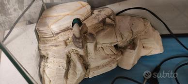 Acquario per tartarughe in vetro, accessoriato come in foto ovvero con pompa e senza riscaldatore. Misure: base 28 x 52 cm. Altezza anteriore 18 cm, posteriore 30 cm. Venduto senza coperchio. Esclusivo ritiro a mano in None (TO).