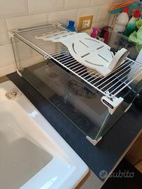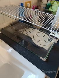 vendo come nuova , tartarughiera in vetro 50 x 27 x30 con pompa filtro e riscaldatore e con coperchio a rete anti gatto . 50 euro