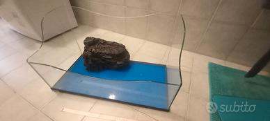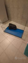 Acquario per tartarughe di vetro, con isoletta apribile. Misure Base 59x29 Altezza massima (dietro) 33 Altezza minima (davanti) 20