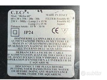 Vendo acquario BIRBA 60 litri (60x30x35) con accessori e timer vari Regalo inoltre piccola vasca senza coperchio.