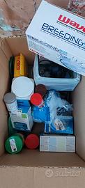 Regalo molti accessori, mangiatoia automatica programmabile, mangimi e pompe acqua.