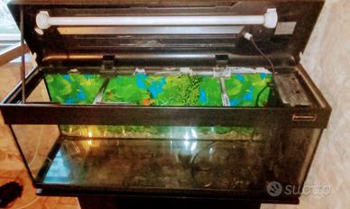 acquario completo di tutto, luce al neon, filtro acqua, pompa acqua, nessun graffio sui vetri. mobiletto incluso su misura dell' acquario. Ottimo affare