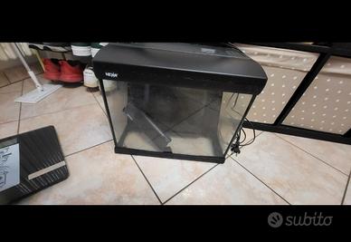Acquario nero, con luce e pompa del ricircolo d'acqua. buone condizioni, tutto funzionante.