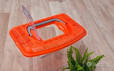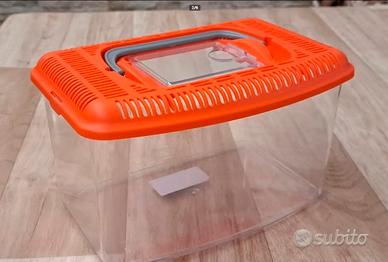 Acquario rettangolare in plastica, misura media, con coperchio a griglia per un' areazione adeguata e uno sportellino apribile per inserire il cibo. Ideale per pesci di acqua fredda. Regalo piantina finta per arredo. Misura 26x16x14 cm.