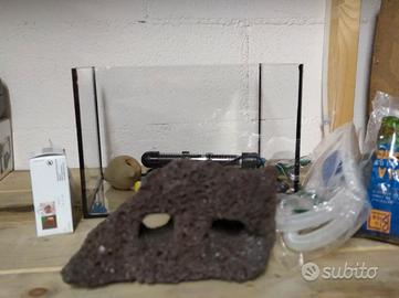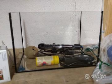Vendo Kit completo piccolo Acquario in vetro completo di tutti gli accessori e rifiniture (sasso, anfora, piante, ecc.) ottimo per cominciare a gestirne uno di pochi pesci