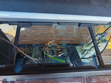 Acquario completo di accessori e neon. Dimensioni L80 h40 p30