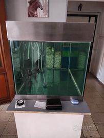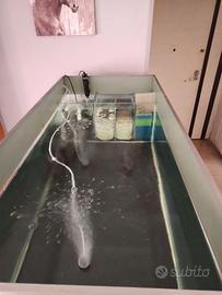 Salve a tutti, Vendo acquario completo di scaldatore da 500W , pompa da 2200 , 10 kg di cannolicchi vetrificati , spugne, lana, ossigenatore, 5kg di sabbia quarzo bianco