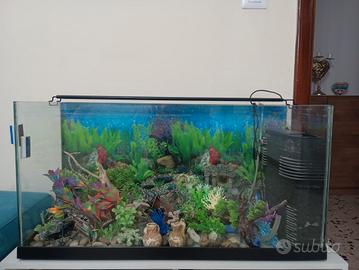 vendo acquario completo di tutto , pompa , ossigenatore , filtro completo di materiale filtrante , una marea di accessori tra piante , barca vasi pietre test per acqua ecc ecc . dismesso per motivi di lavoro. .
