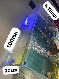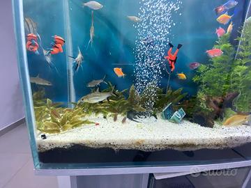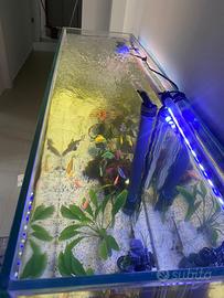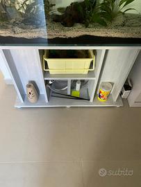acquario artigianale con vetri trasparenti con riciclo acqua + mobile sabbia in foto fertilizzante, accessori vari e radici di legno .