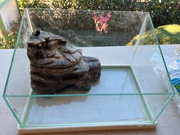 Vendo acquario tartaruga con cascata completo di pompa per il riciclo d’acqua piu fibra sintetica come filtro. Misure acquario 35x24x20