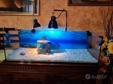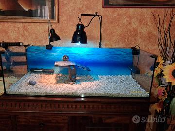 come da titolo vendo rartarughiera 120 litri misure 100 x 40 x 30 completo di tutto il necessario per ospitare tartarughine acqua dolce. è completo di sottofondo in sassolini bianchi, riscaldatore 100 w filtro newa con ricambi spugne ecc. lampade uv - uvb. penisola insomma tutto come da foto. non spedisco per ovvi motivi,e quindi si predilige la consegna a mano su Pianoro, Bologna e dintorni.