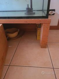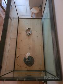 Acquario tartarughiera a scelta. Io l'ho utilizzato come tartarughiera ma ora le due occupanti sono cresciute parecchio. Acquario fornito di mobile con foro di entrata e uscita per i tubi del motore. Nel mezzo è presente un residuo di un allestimento siliconato, non ho modo di rimuoverlo ma con un fondo di sassi o sabbia diventa invisibile. Ci sono leggeri residui calcarei che per questione di tempo non posso rimuovere perfettamente. Non ho più disponibile il coperchio.