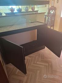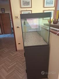 Acquario/terrario in vetro e ferro. Dimensioni vasca: altezza cm. 59, larghezza cm. 138. Dimensioni mobile sottostante: altezza cm. 87, larghezza cm. 138.