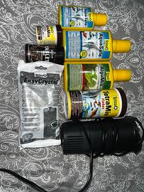 Vendo senza pesci con pompa e + 1 motore interno+ riscaldatore e decorazioni interne +macchinario per le bolle e 2 scatole di mangime per pesci tropicali + mangime per pulitori + prodotti per l’acqua + filtro nuovo al carbone + 2 termometri per la temperatura del acqua
