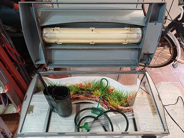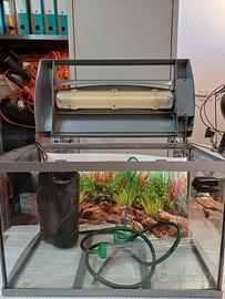 Vendo l'acquario Tetra 60 litri con la pompa e filtro, la lampada adatta alle piante, il termometro, il magnete per pulizie vetro, il tubo per ricambi d'acqua e un poster. In buone condizioni, qualche graffio presente. Misure largh.59xalt.46xprof.31cm.