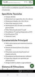Vendo acquario marca tetra funzionante pari al nuovo, completo ( filtro, riscaldatore illuminazione di due colori giorno/notte) come da descrizione in foto un anno di vita tutto funzionante. Al momento non attivo ed in fase di pulizia, compreso nel prezzo mobile ,mangiatoia automatica accessori vari ( retino, aspiratore per pulizia manuale ed elettrico pinze e forboci, prodotti mantenimento acqua, ecc...) All'interno presenti rocce, vero tronco e sabbia . Descrizione di acquario e mangiatoia consultabili dalle foto allegate o su amazon . Non spedisco , non trattabile. Solo Acquario e mobile acquistati a 220 euro . Vero affare, vendo perché devo fare spazio in casa.
