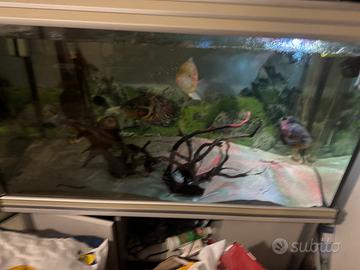 Vendo acquario 570litri con 2 filtri esterni 3 oscar 1 plecostomus 1 potia e qualche ancistrus 2 mangiatoie automatiche e mobile