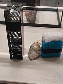 Vendo acquario per passaggio ad uno piu' piccolo. Misure 60 x 30 x 35 57litri. Completo di filtri di varie misure, porta filtri, termometro, pompa, coperchio con luce a led. Usato 15 giorni... Prezzo trattabile.