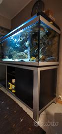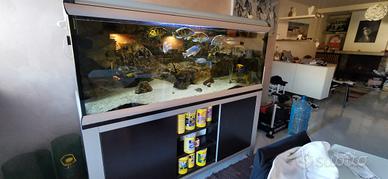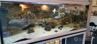 Vendo acquario Ferplast 160x60x60 completo di filtri fluval fx6 eheim professional 3 e sfondo roccioso in resina fatto su misura da ditta italiana specializzata. Attualmente con una 15ina di ciclidi Malawi. Vendo pacchetto completo ma anche separatamente