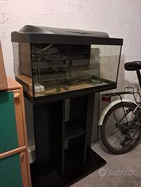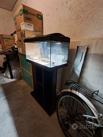 vendo acquario in foto completo di coperchio, illuminazione led, riscaldatore, sala parto, termometro e sfondo nero. necessita solo di una pulita. prezzo 30 euro. in aggiunta mobiletto nero a 20euro.