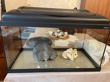 Vendo acquario usato per qualche mese e poi svuotato. Comprende anche filtro, luce a led superiore, pietre, e accessori vari