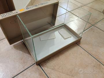 Crystal Box 40 Acquario in vetro rettangolare 40x22x25cm Crystal box 40 rettangolare: Cod. AA071040 Acquario: 20 litri in vetro extrachiaro Materiale: vetro extrachiaro Spessore vetro: 5 mm Dimensioni: 40 × 22 × 25(h) cm Volume: 20 litri