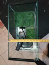 acquario x tartarughe d acqua o x pesciolini,42cm x 21 cm provvisto di pompetta pulitrice dell acqua,settore in erba sintetica, più vetri di copertura superiore,
