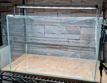 Compreso anche il coperchio in plexiglass fatto su misura con incavi per filtro a zainetto e lampada.