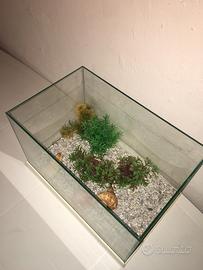 Piccolo acquario x tartarughe in vetro le misure sono lug 41 cent ..profondita 26 cent.. altezza 26 cent ..