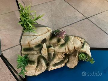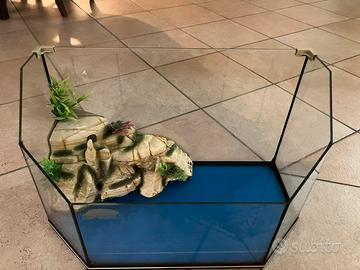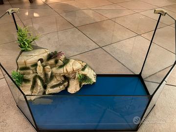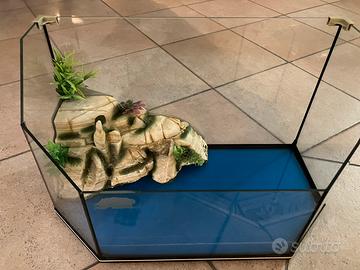 Acquario in vetro temperato per tartarughe con isola e sede per inserimento pompa ricircolo acqua