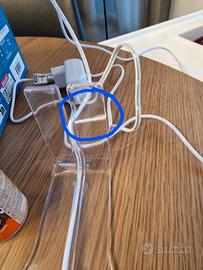 Unico difetto: l' astina della lampada si è rotta, è stata incollata ( come da foto ), ciò non compromette in nessun modo il suo regolare funzionamento.