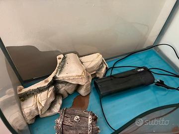 Acuqario per tartarughe con filtro e oggetti