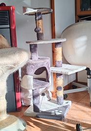 Albero tiragraffi per gatti a 5 livelli con casetta e 2 giochi. Alto circa 141 cm l'ingombro La terale può essere ampliato o ridotto ruotando i singoli ripiani. Vendo per inutilizzo perché i miei gatti preferiscono il vecchio trespolo o il divano.