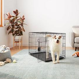 Amazon Basics Gabbia per cani in metallo, Pieghevole,Rimovibile, con vassoio di base e doppio sportello, Nero, 91 x 58 x 64 cm Gabbia per cani con doppio ingresso anteriore e laterale; progettata per la sicurezza del tuo animale, la sicurezza e il comfort Gabbia per cani da interno da 91,4 cm realizzata in resistente filo metallico; divisorio, robusto vassoio di base e maniglia superiore inclusi Affidabili meccanismi di chiusura manuale per un contenimento sicuro Ripiegabile per essere trasportata e conservata facilmente; vassoio di base in plastica rimovibile per una facile pulizia Dimensioni del prodotto: 91,4 x 58,4 x 63,5 cm (lunghezza x larghezza x altezza)