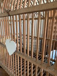 Antica gabbietta per uccellini in legno. Bellissimo oggetto anche per arredamento.