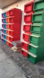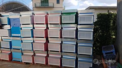 arnie in kit a 60 euro cadauna, arnie montate e verniciate 70 euro cadauna, melario in kit a 12,50 euro cadauno, melario montato e verniciato a 14 euro cadauno, telaini da melario e da nido con il filo a 1 euro cadauna ,