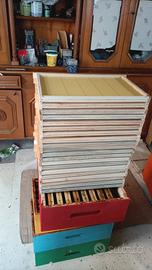 Arnie con il portichetto montate e verniciate 70 euro cadauna, arnie con il portichetto in kit a 60 euro cadauna, melari montati e verniciati a 14 euro cadauno, melari in kit a 12, 5 euro cadauno, telaini con il filo da nido e da melario a 1 euro cadauna, telaini da nido con il fogli cerei a 3 euro cadauna, telaini da melario von il fogli cerei a 2, 5 euro cadauna , non spedisco
