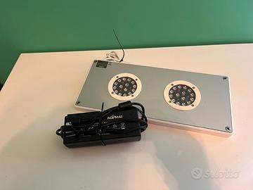 plafoniere da 100 watt ciascuna, adatte per marino, si possono allevare tutti i tipi di coralli dai molli ai duri "sps" più esigenti. comandate da AP.