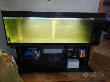 Salve vendo aquario 500 litri con mobile completo di guadino per i pesci .una pompa manuale per aspirare il fondale .una seconda pompa aspira fondale elettrica .un riscaldatore 800 wat.una pompa del Aqua da 1000 litri . compreso di luce a led. Una pompa ossigenatore con 2 sfiati daria . trattabile