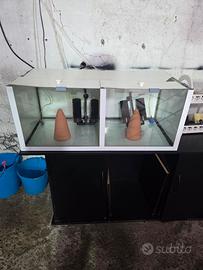 vendo aquario diviso in 2 per riproduzione misure lunghezza 94 altezza 35 larghezza45 in buono stato prezzo 30 euro.