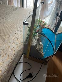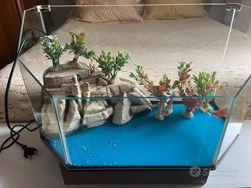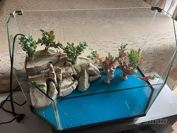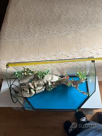 Aquario per Tartaruga usato e in buona condizione compreso la pompa e la roccia finta . Le misure sono 52 cm per 27 cm per 30 cm.