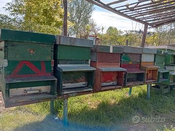 Vendo arnie usate in buono stato con melario telaini sia nido che melario, escludiregina in acciaio,tutto pulito e disinfettato a fiamma. Dieci disponibili. Ritiro in loco.