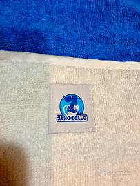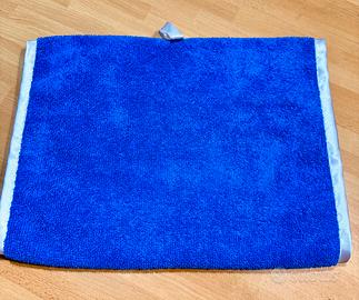In microfibra, bianco e blu, da appendere, con manopole per avvolgerlo meglio durante l’asciugatura cm. 98 × 30