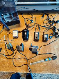 Vendo in blocco attrezzature per acquario. 6 pompe acqua. 2 soffiatori. Riscaldatore 150w. Lampada led. Filtro. Sabbia. Piantine. Tutto perfettamente funzionante.