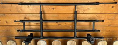 Vendo barriera /divisorio universale per auto . Regolabile sia in altezza che lunghezza 4 montanti. Si aggancia ai poggiatesta dei sedili posteriori. Larghezza minima 88cm max 136 cm, altezza minima 30cm max 45,5.