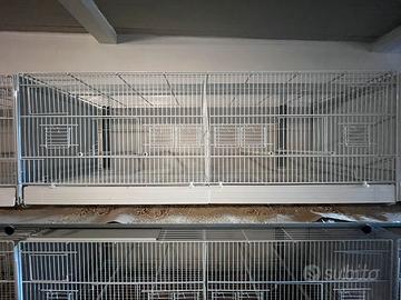Si cede batteria Domus Molinari, sistema carta, composta da n.12 voliere da cm.120, apribili, completa di vassoi poggia-carta, doppie griglie per ogni gabbia, divisori e bastoni poggia-zampe.